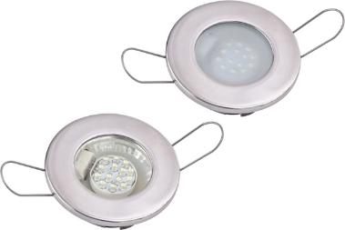 LED Overhead Lights feature excellent light dispersion and brightness, making them ideal for all accent lighting in cabins, walkways, cockpits, and interior compartments. Spring mounted they are recessed to provide a sleek appearance. G4 LED bulb features 14 white LEDs producing 60 lumens. Constructed of corrosion resistant 304 stainless steel with a brushed finish to compliment any interior. Available in two sizes with a clear or frosted lens. 60 MA, 0.7W @ 12VDC.
